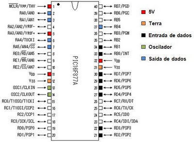 O PIC C é um circuito integrado produzido pela Microchip Technology Inc. , que pertence a categoria dos microcontroladores, ou seja, um componente integrado que em um único dispositivo contem todos os circuitos necessários para realizar um completo sistema digital programável. O pic pode ser visto externamente como um circuito integrado TTL ou CMOS normal, mas internamente dispõe de todos os dispositivos típicos de um sistema microprocessado, ou seja: Uma CPU (Central Processor Unit ou Unidade de Processamento Central) e sua finalidade é interpretar as instruções de programa; Uma memória PROM (Programmable Read Only Memory ou Memória Programável Somente para Leitura) na qual ira memorizar de maneira permanente as instruções do programa; Uma memória RAM (Random Access Memory ou Memória de Acesso Aleatório) utilizada para memorizar as variáveis utilizadas pelo programa; Uma serie de LINHAS de I/O (entrada e saída) para controlar dispositivos externos ou receber pulsos de sensores, chaves, etc.